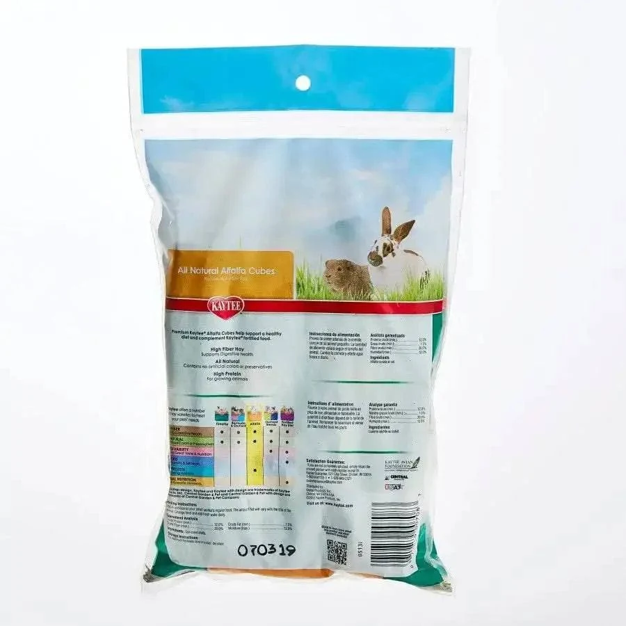 Kaytee Alfalfa Cubes are tightly compressed blocks of nutritious sun-cured alfalfa that are a great fiber source for small animals or natural treat that complements any Kaytee food Sun-cured alfalfa”